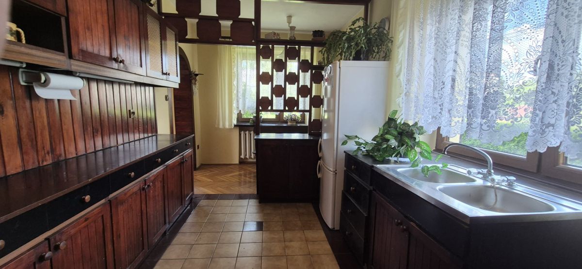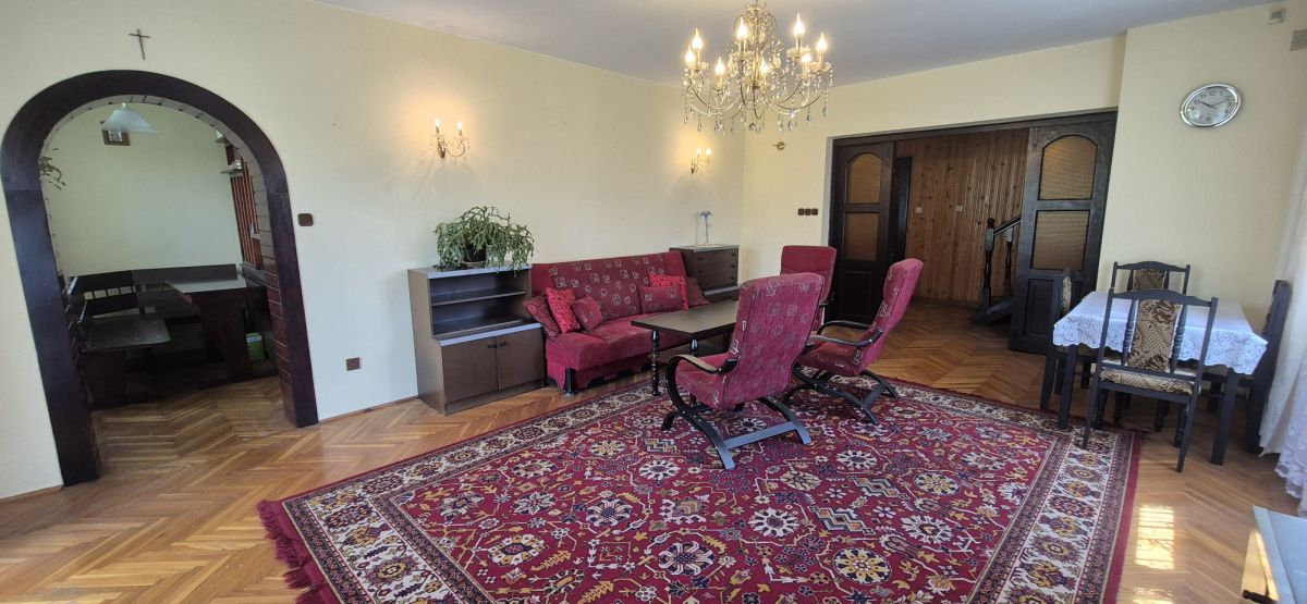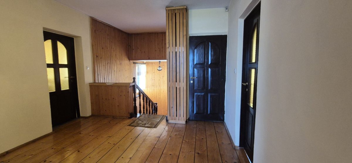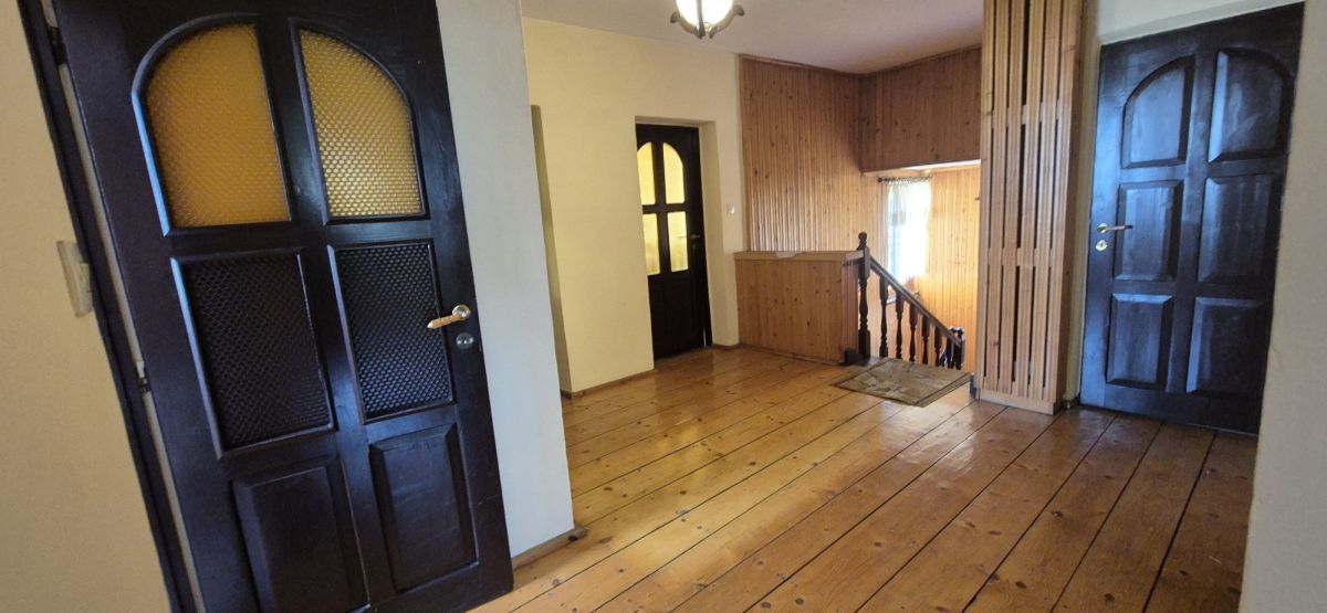 1316 m².Na parterze mieści się salon z wyjściem na taras, kuchnia z jadalnią, toaleta, wiatrołap, oraz pomieszczenia gospodarcze z przejściem do warsztatu, na piętrze - cztery sypialnie, łazienka, balkon. W warsztacie znajdują się dwa stanowiska z kanałami, łazienka, pom. biurowe oraz zaplecze, ewentualne wynajęcie go może przynieść dodatkowe dochody.