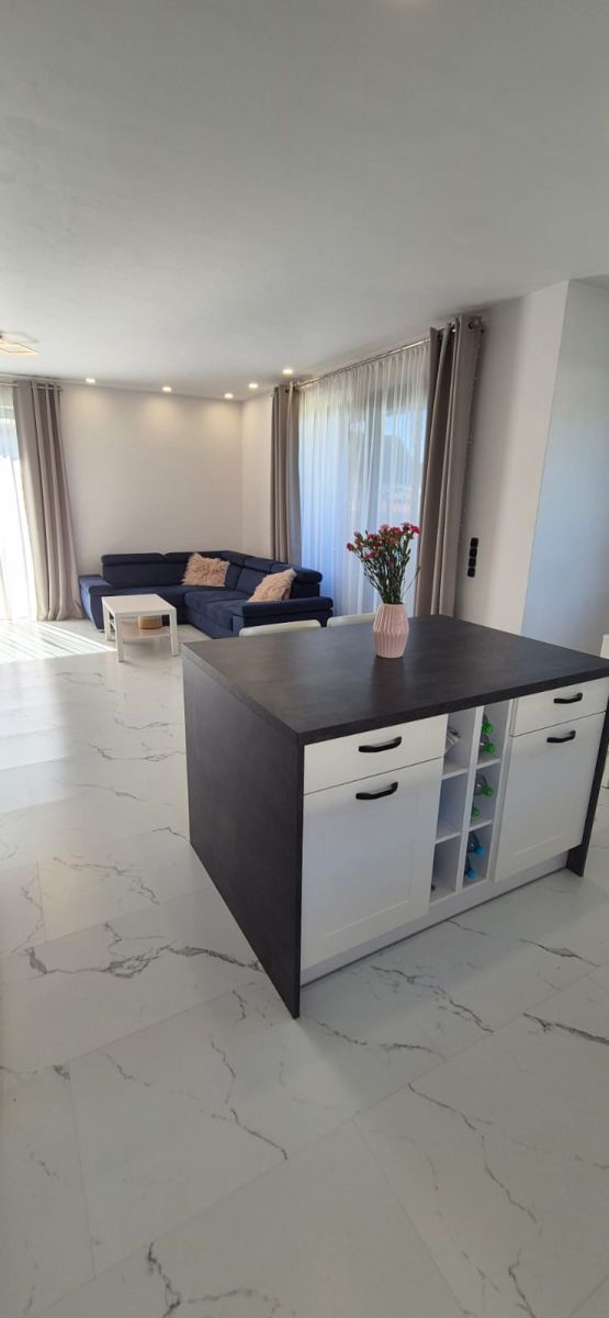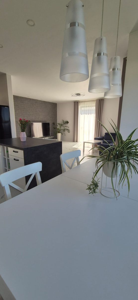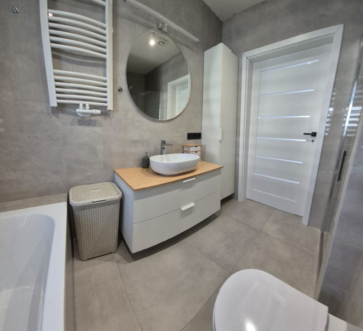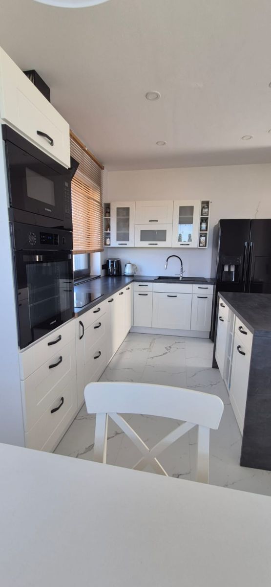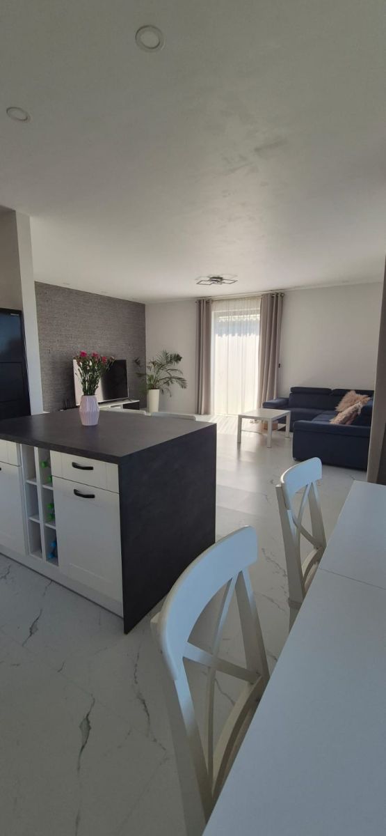 - wyposażenie łazienki oraz kuchni widoczne na zdjęciach w cenie - meble kuchenne z wyspą oraz sprzętem AGD;